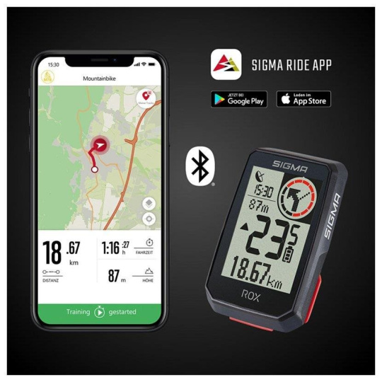 Prostřednictvím Bluetooth lze data z cyklopočítače odesílat do smartphone a v aplikaci SIGMA RIDE je ukládat a vyhodnocovat. Nejdůležitější data a statistiky je možné přehledně uspořádat do barevných datových polí, rychle je zobrazit na displeji a pohodlně vyhodnotit.