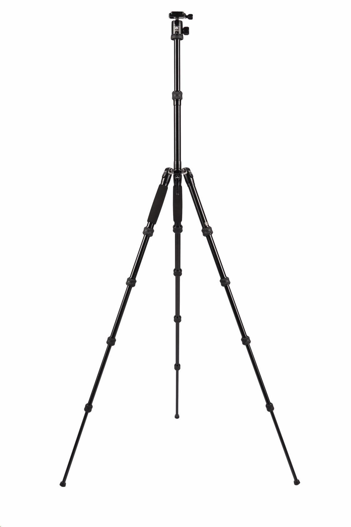 Počet vodováh: 1 Středový sloupek: Ano Způsob uchycení hlavy: 3/8", 1/4" Typ zámku nohou: Twist Lock Sekce nohou: 5 Rychloupínání (quick release): Ano Patky stativu: Guma Průměr nohy (mm): 22 mm Typ hlavy: Kulová hlava Maximální výška nohou (mm): 1230 mm Materiál: Hliník Maximální zatížení (kg): 5 kg Minimální výška (mm): 80 mm Složená délka: 315 mm Maximální výška (mm): 1380 mm Barva: Černá Použití: Kompakt s výměnným objektivem, DSLR, CSC Hmotnost (g): 1050 g.