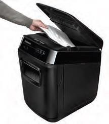 Skartování nikdy nebylo snazší. Revoluční novinka značky Fellowes, Vás o tom přesvědčí. Jen nalož, zapni a běž. Tento automatický skartovací stroj Vám umožní věnovat se prospěšnějším kancelářským činnostem, nežli je opakované postávání u běžného skartovače. Zařízení je schopno na jeden pracovní cyklus při automatickém podávání skartovat až 200 listů 70g papíru v křížovém řezu 4×38 mm. Skartovač je vybaven vstupní štěrbinou pro ruční podání až 10-ti listů papíru. Výkonný řezací mechanismus zpracuje při automatickém podávání sešívačkou sešité papíry (až 20 sponkou sešitých listů 70g papíru). Při manuálním podávání i kreditní karty, CD/DVD.