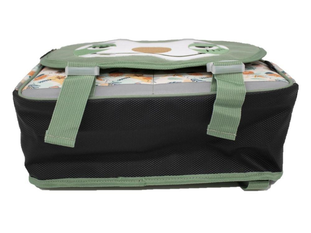 Aktovka (školní batoh) v neutrálních barvách, s roztomilým lenochodem, je ideální školní taškou pro prvňáčky. Velký vnitřní prostor, do kterého děti pohodlně uklidí i sešity ve formátu A4, 2 vnitřní přihrádky, vnitřní kapsa na zip, to vše usnadní novopečeným školáčkům chystání a úklid školních potřeb. Samozřejmostí jsou polstrované ramenní pásy, poutko, štítek na jméno i reflexní prvky..