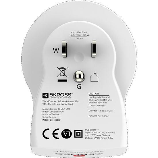 SKROSS cestovní adaptér USA USB pro použití ve Spojených státech, typ B