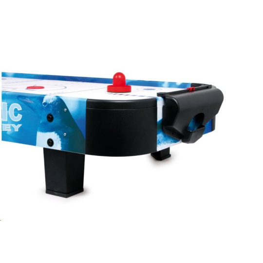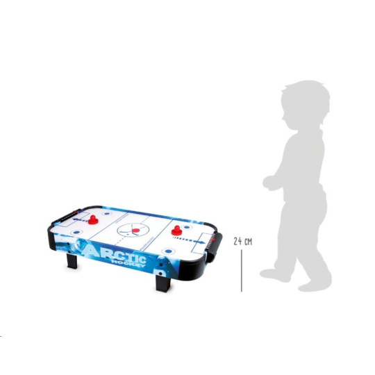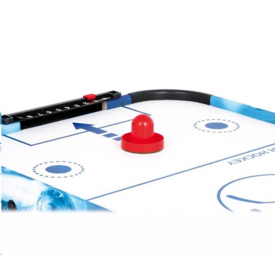 Populární vzdušný hokej prověří postřeh a hbitost dětí. Díky vzduchu vháněnému zespodu vestavěným ventilátorem může puk hladce, ale hlavně bleskurychle klouzat po hrací ploše. Hráči mají k dispozici kuželové pálky, kterými se snaží vstřelit puk do soupeřovy branky. Pálky jsou na spodních stranách opatřeny plstí pro snadný a bezhlučný pohyb. Branka každého z hráčů je vybavena jednoduchým číselníkem k zaznamenávání průběhu zápasu. Hru lze díky její velikosti snadno uklidit, přenášet, nebo i vzít na cesty. Napájení je zajištěno adaptérem se standardní eurozástrčkou pro 220–240 V. Výrobek vyžaduje montáž, dodáváno s obrázkovým návodem k sestavení.