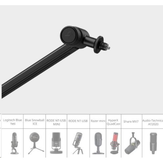 Na rozdíl od běžných mikrofonních ramen je tento stolní držák vybaven třemi hydraulickými tlumicími klouby, které umožňují nastavení více úhlů.
