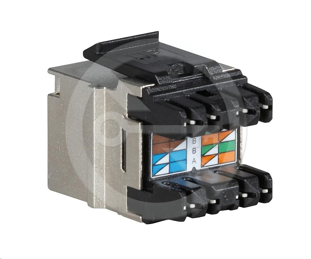 Rychlozařezávací stíněný keystone CAT6A s Connecting Hardware a a 4PPoE certifikací.