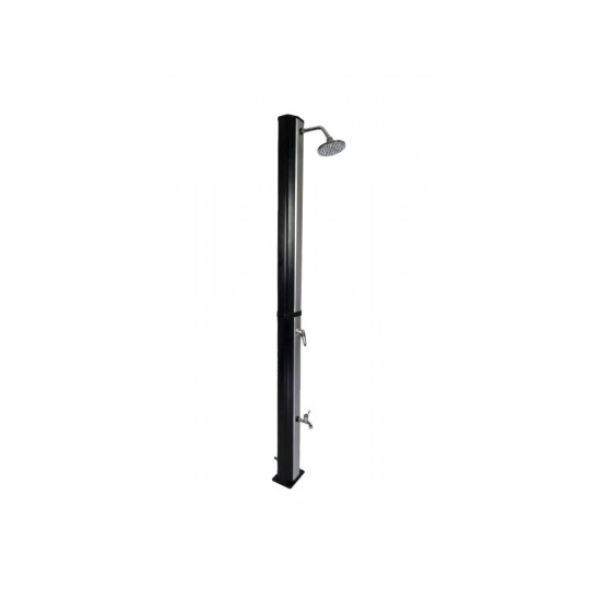 Velmi oblíbená solární sprcha s velkou sprchovací hlavicí, která zajišťuje příjemné sprchování připomínající lehký letní deštík. Sprcha je vyrobena z kvalitního PVC odolného vůči UV záření a díky přední části imitují nerez působí luxusním dojmem. Má XL zásobník o objemu 35 l, je vysoká 217 cm a je vybavena praktickým kohoutkem na oplach nohou. Připojení na přívod vody je velmi jednoduché pomocí hadicové rychlospojky (součástí balení). Sprcha je dvoudílná, takže ji lze lehce složit a převézt na jiné místo.