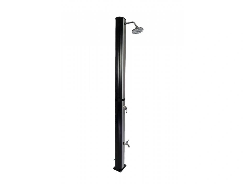 Velmi oblíbená solární sprcha s velkou sprchovací hlavicí, která zajišťuje příjemné sprchování připomínající lehký letní deštík. Sprcha je vyrobena z kvalitního PVC odolného vůči UV záření a díky přední části imitují nerez působí luxusním dojmem. Má XL zásobník o objemu 35 l, je vysoká 217 cm a je vybavena praktickým kohoutkem na oplach nohou. Připojení na přívod vody je velmi jednoduché pomocí hadicové rychlospojky (součástí balení). Sprcha je dvoudílná, takže ji lze lehce složit a převézt na jiné místo.