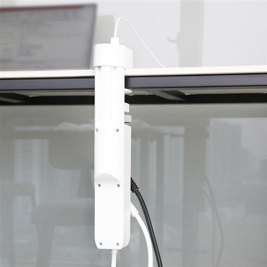 možnost upevnění i v opačném směru, 230V zásuvky nad stolem a USB pod stolem