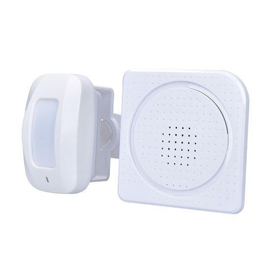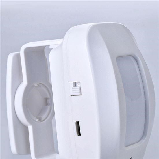 hlásič pohybu/gong s bezdrátovým senzorem - PIR čidlo automatický režim: vyšle signál při detekci pohybu hlasitost: 65 - 80 dB(A) dosah signálu:max. 40m bez překážek operační rozsah: detekce pohybu: 0-8m úhel záběru: 15° vertikálně úhel záběru: 100° horizontálně 36 nastavitelných melodií 3D otočný stojánek senzoru, montážní otvory na stěnu napájení: přijímač: AC 230V~50Hz senzor: 3 x AAA alkalické baterie nebo externí USB nabíječka 5V DC (nejsou součástí baleni) vhodný pro obchody, firmy, kanceláře barva: bílá.