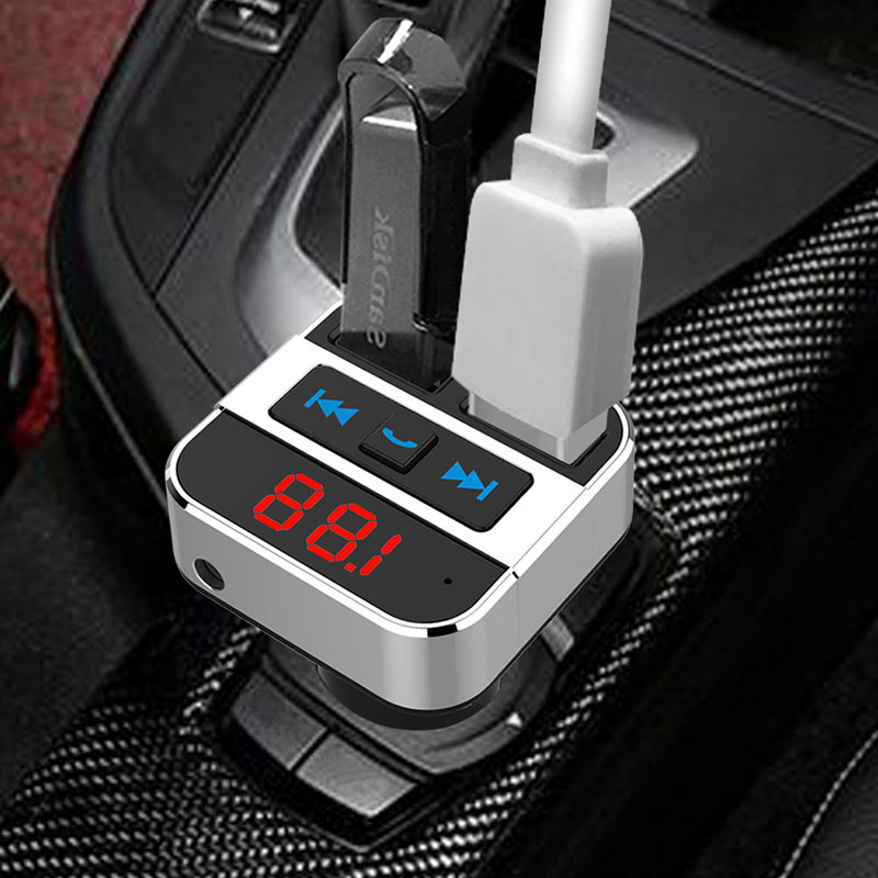 - bluetooth FM transmitter pro přehrání hudby z multimediálních zařízení, mp3 přehrávač, autonabíječka + handsfree