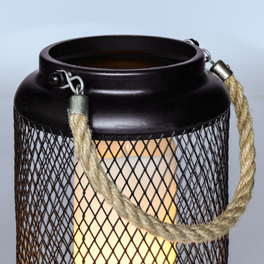 - kovová lucerna s LED svíčkou s mihotavým plamenem