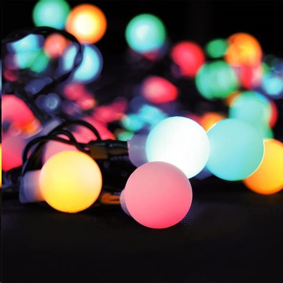 Solight LED 2v1 venkovní vánoční řetěz, koule, dálkový ovladač, 100LED, RGB+bílá, 10m+5m, 8 funkcí, IP44