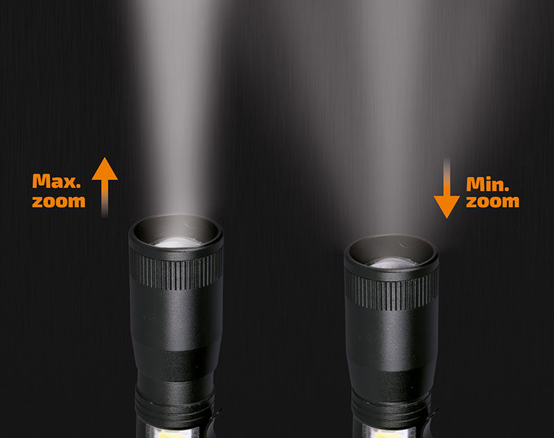 - LED kovová svítilna s hlavním 3W zdrojem a boční LED COB