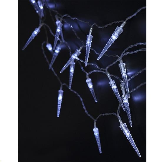 LED venkovní rampouchy počet LED diod / rampouchů: 50 8 světelných módů (blikání, prolínání světla, stmívání atd...) vnitřní i venkovní použití integrovaný 8hod. časovač časovač po 8hod. světlo vypne a po 16hod. znovu automaticky zapne barva světla: studená bílá vzdálenost diod: 15cm délka osvětleného kabelu: 7,5m barva kabelu: transparentní délka přívodního kabelu: 50cm napájení: 3x AA baterie (nejsou součástí) výdrž baterií: cca 72 hodin (v závislosti na kvalitě baterií) třída ochrany: IP44 (venkovní použití) balení: barevná krabice.