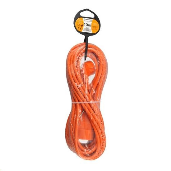 Oranžový prodlužovací kabel s délkou 10 metrů a jednou zásuvkou je ideální k prodloužení elektrické energie na zahradě nebo v dílně. Díky třem vodičům včetně uzemnění je vhodný pro připojení jakýchkoli zařízení s třípólovou uzemněnou i dvoupólovou neuzemněnou vidlicí přívodní šňůry. Barevné odlišení od okolního prostředí zvyšuje bezpečnost při práci.