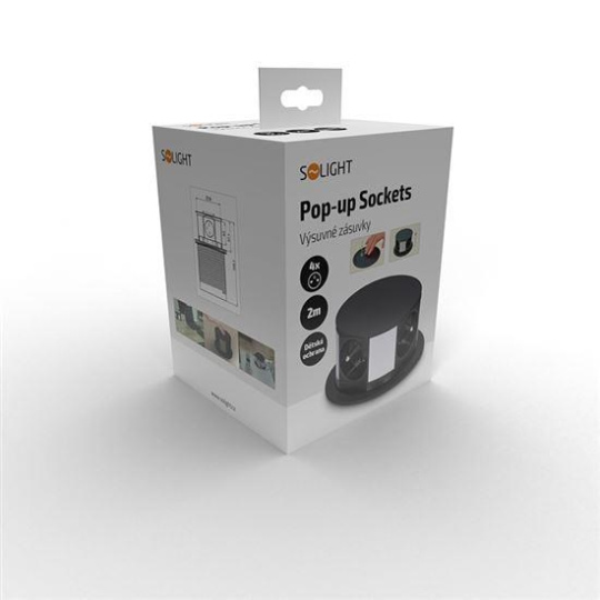 Solight prodlužovací přívod, 4 zásuvky, černý, 1,5m, výsuvný blok zásuvek, kruhový tvar