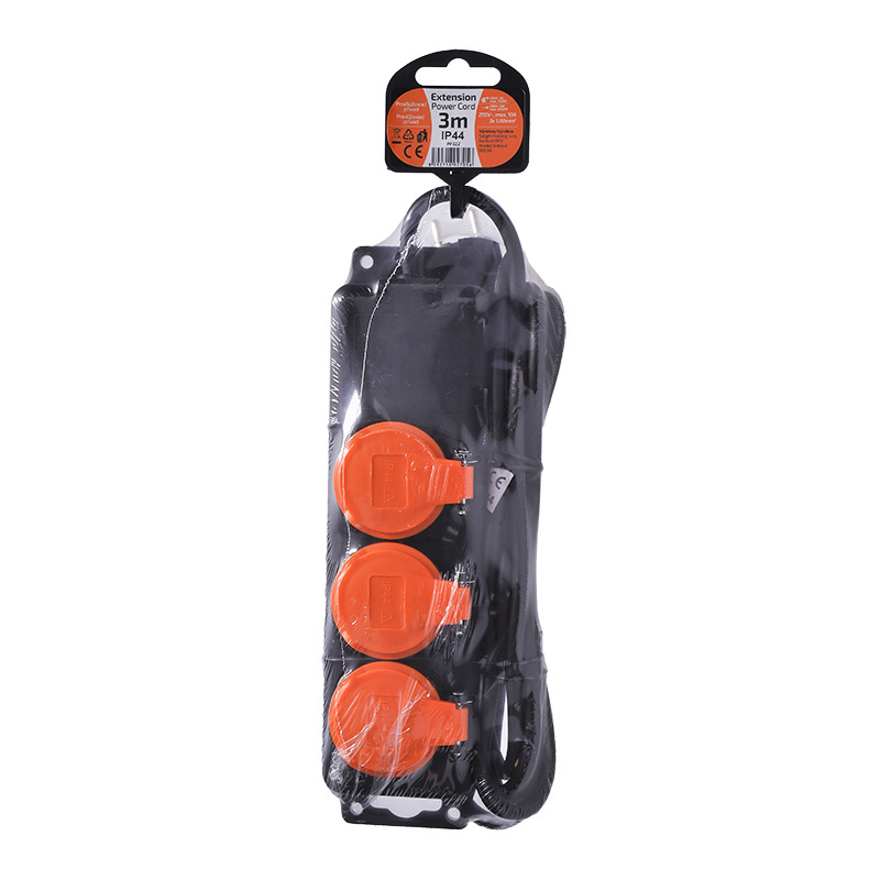 Solight prodlužovací přívod IP44, 3 zásuvky, gumový kabel, venkovní, 3m
