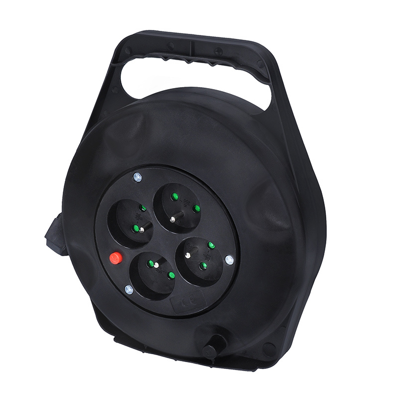 Kabel z PVC s vodiči o průřezu 3×1,5 mm2 je vhodný pro použití v interiéru nebo v suchých, chráněných prostorách. Buben je vybaven čtyřmi zásuvkami s dětskými pojistkami, navíc i tepelnou pojistkou, která přeruší napájení v případě přetížení nebo při použití bez úplného odvinutí kabelu.