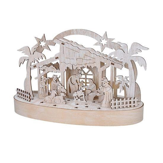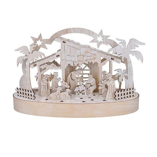 LED dřevěný betlém v barvě přírodního dřeva