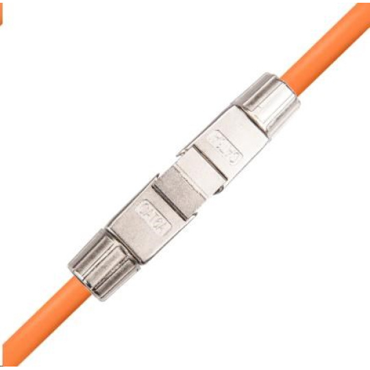 Malý beznástrojový box pro propojení kabelů Cat6A bez ztráty vlastností.