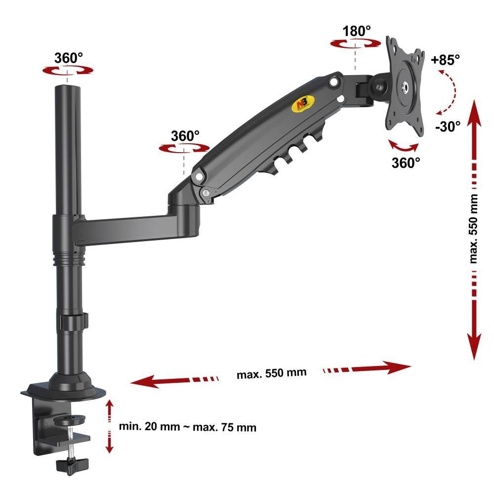 Stolní kancelářský držák na monitor NB H80B Stolní držák na monitory 17-27", plně polohovatelný, TOP kvalita a design, otáčení do stran, naklápění, vysouvání, PIVOT, VESA 75/100, nosnost 9kg Špičkový stolní držák s uchycením na okraj nebo do prostoru stolu. VESA standard 75x75 a 100x100 pro uchycení monitorů s úhlopříčkou 17-27". Držák umožňuje plnou nastavitelnost polohy monitoru: otáčení do stran, duální výškové polohování, naklápění, vzdálenost od uchycení a rotace monitoru. Rameno držáku je osazeno plynovým pístem s nastavitelnou tuhostí 2-9kg, výškové polohování je tedy extrémně jednoduché a pohodlné. Barevné provedení černé, záruka 3 roky. Stolní držák monitoru na okraj stolu nebo do prostoru stolové desky, nosnost 9kg, VESA 75x75 a 100x100, úplné 3D nastavení polohy monitoru, profesionální kvalita - NB H80B Technické údaje: zatížení: minimálně 2kg, maximálně 9kg na monitory s úhlopříčkou 17" až 27" VESA standardy 75x75 a 100x100 duální výškové polohování (ramenem s pístem + objímkou na nosníku) nastavení výšky od stolu 0-550mm otáčení do stran +360° / -360° náklon +85° / -30° rotace obrazovky - na šířku nebo na výšku dva typy úchytů na stolovou desku (na okraj stolu nebo do prostoru stolové desky) uchycení na stolové desky o průměru 20-75mm systém pro uspořádání kabelů barevné provedení černé záruka 3 roky Profesionální stolový držák na monitor NB H80B Držák monitoru NB H80B podporuje VESA standardy: VESA 75x75 VESA 100x100 Profesionální kvalita, krásný dizajn a extrémní polohovatelnost - to vše za cenu stolních držáků střední třídy..