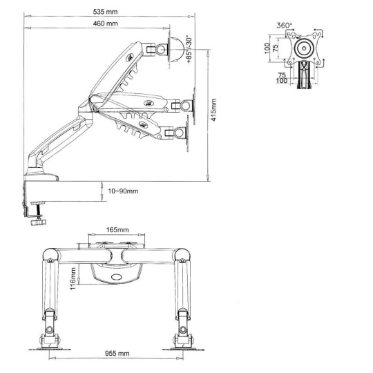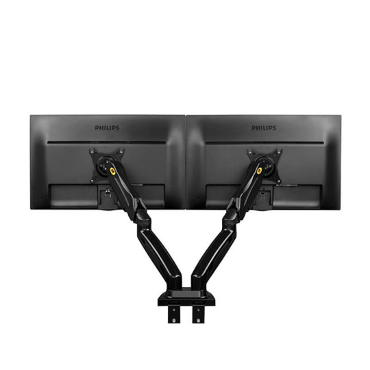 Stolní držák na 2 monitory displeje NB F160 Stolní držák na zavěšení 2 monitorů 17-30", nezávislé nastavení každého monitoru, výškové polohování 140-400mm, otáčení do stran +/-180°, naklápění +85°/-30°, vzdálenost od úchytu 0-530mm, pivot +/-360°, VESA 75x75 a 100x100, nosnost 18kg Vynikající stolní držák na monitory a menší televizory v profesionální kvalitě, krásném designu, s mnoha nadstandartními možnostmi nastavení. Otáčení obrazovky do stran, náklon nahoru i dole ve vysokém úhlu, nastavení vzdálenosti od uchycení, korekce roviny obrazovky, horizontální nebo vertikální otočení obrazovky, systém skrytého vedení kabeláže. Výškové nastavení až 400mm, výšková regulace 260mm - velmi snadná manipulace. To vše v unikátním designu. Držák má velmi odolnou a bezpečnou konstrukci a je vhodný i do velmi vytížených provozů, kde je potřeba neustálé manipulace. Stolní držák na 2 monitory NB F160 NB F160 kvalitní dvoumonitorový držák na stůl, polohovatelný Držák je díky možnosti plné nastavitelnosti, profesionální konstrukci a pěkného designu vhodný pro velmi široké spektrum využití. Doporučujeme jak do domácností, tak kanceláří, pracoven, školních tříd, nemocnic, call center, IT pracovišť, provozů a firem. Stolní multimonitorový držák NB F160 - nezávislé zavěšení 2 monitorů na stolní držákKancelářský stolní držák na 2 pc monitory v TOP kvalitě a designu - NB F160 Technické údaje: nosnost 18kg podporuje VESA standarty 75x75 a 100x100 doporučujeme na monitory a televizory s úhlopříčkou 17" až 30" otáčení na obě strany +180° až -180° nastavení výšky monitorů 140-400mm náklon monitorů +85°/-30° vzdálenost od stolního uchycení 0-530mm horizontální i vertikální otočení obrazovky - funkce pivot +/-360° systém pro vedení kabeláže profesionální držák vysoké kvality 2 typy uchycení na stolovou desku - na okraj nebo skrz stolovou desku 10-90mm záruka 5 let Kancelářský držák na dva monitory NB F160 Kvalitní polohovací držák na monitory do kanceláře NB F160 Kancelářský stolní držák NB F160 podporuje VESA standarty: VESA 75x75 VESA 100x100.
