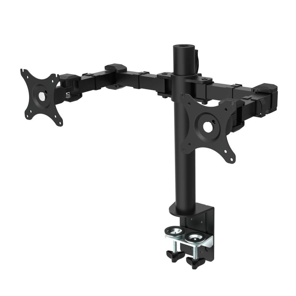 Stolní držák na 2 monitory Ergosolid NF12 Stolový držák na 2 monitory 10-30", otočný +/- 180°, sklopný +85°/-15°, pivot, nastavení výšky 20-34cm, délka ramen 36cm, VESA 75x75 a 100x100, spolehlivý stolní úchyt 20-100mm, nosnost 20kg Stolový držák pro spolehlivé zavěšení dvou monitorů a jejich nezávislé nastavení. Držák vyniká svou kvalitou, spolehlivostí a snadným polohováním zavěšených monitorů. Velmi snadno nastavíte výšku monitorů (bez použití nářadí), náklon, otáčení do stran, rotaci obrazovek (otočení na šířku nebo na výšku), korekce roviny obrazovky. Nosník držáku je uzpůsoben pro vedení kabeláže, vývod je nad stolovou deskou. Uchycení držáku je možné na okraje všech stolových desek o průměru 20mm až 100mm. Držák je vhodný pro zavěšení monitorů s úhlopříčkou 10" až 30" s hmotností až 10kg (celková nosnost 20kg). Barevné provedení černé. Záruka 3 roky. Stolový držák na 2 monitory Ergosolid NF12 Technické údaje: celková nosnost 20kg na monitory s úhlopříčkou 10" až 30" podpora VESA standardů 75x75 a 100x100 nastavitelná výška 200-340mm nezávislé nastavení každého monitoru otáčení do stran +/- 180° náklon +85° až -15° funkce PIVOT - otočení monitoru na šířku nebo na výšku nastavení vzdálenosti monitoru od úchytu délka ramen 360mm 3 spolehlivé klouby pro nastavení požadované pozice každého ramene materiál ocel uchycení na okraj všech stolových desek o průměru 20mm až 100mm barevné provedení černé balení obsahuje instalační materiál záruka 3 roky Kvalitní stolní držák pro uchycení a polohování 2 monitorů Ergosolid NF12 Držák podporuje VESA standardy pro uchycení monitorů: VESA 75x75 VESA 100x100 Stolní držák na 2 monitory ERGOsolid NF12 je vhodný pro zavěšení všech dostupných značek monitorů. Držák je vhodný na monitory Acer, AOC, Asus, BenQ, Dell, Eizo, Fujitsu, Hanspree, HP, iiyama, Lenovo, LG, Marshall, MSI, NEC, Neovo, Panasonic, Philips, Samsung, Sharp, ViewSonic, All in One PC a další. Díky výborné kvalitě, odolnosti a spolehlivosti se tyto držáky osvědčili pro použití i v náročných provozech: školní učebny, knihovny, nemocnice, provozy a výrobní haly ve firmách..
