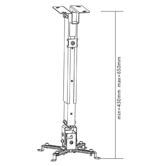 Stropní držák na projektor Fiber Mounts M5C81 Stropní držák na projektory, univerzální, nastavení vzdálenosti od stropu 430-650mm, naklápění +/-15°, barva stříbrná, nosnost 20kg Držák na projektor s nastavitelnou délkou od stropu, celokovové provedení s vynikající bezpečností. Dvě možnosti sestavení držáku se vzdáleností od stropu 130mm, nebo 430 až 650mm. Možnost náklonu a korekce roviny. Snadné nastavení a manipulace. Dodáváme ve stříbrném provedení včetně instalačního materiálu. Prodloužená záruka na 5 let. Délkově nastavitelný stropní držák na projektory a dataprojektory Fiber Mounts M5C81 Technické údaje: Nosnost 20kg Vhodný na 99% všech dostupných projektorů s možností zavěšení Náklon až +/- 15° Korekce roviny +/- 15° Dvě možnosti sestavení - včetně nebo bez délkového nástavce S délkovým nástavcem - vzdálenost od stropu 430-650mm Bez délkového nástavce - vzdálenost od stropu 130mm Systém pro vedení kabeláže Kovová konstrukce, velmi bezpečné zavěšení Snadná montáž Instalační materiál součástí balení Barva stříbrná Záruka 5 let Držák projektoru M5C81 je možné použít bez délkového nástavce Možnost sestavení tohoto stropního držáku na projektor ve dvou verzích: včetně délkového nástavce, kdy bude možné projektor dát do vzdálenosti od stropu 430mm až 650mm, nebo ho sestavit bez délkového nástavce, kdy bude výška fixní ve vzdálenosti 130mm od stropu..