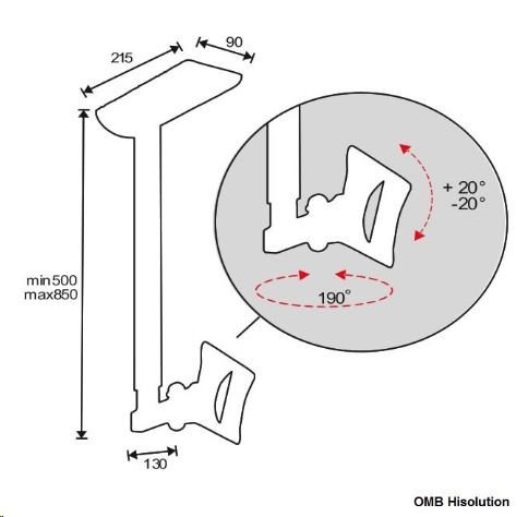 Držák pro zavěšení Tv a monitorů s úhlopříčkou 17-42" na strop, délkové nastavení Cenově dostupný stropní držák Tv nebo monitoru, který je výborného zpracování a kvality. Držák Vám umožní plnohodnotné nastavení pozice obrazovky: otáčení do stran, náklon nebo výškové polohování. Díky krytce je možné i ukotvení za sádrokartonový strop - průchod zakryjete. Kabeláž je možné vést vnitřkem držáku. Na výběr máte ze dvou barevných variant: černý nebo stříbrný. Držák podporuje VESA standardy 75x75 až 200x200, možné je za příplatek rozšíření VESA až na 400x400. Držák je vhodný na všechny typy televizorů i monitorů s hmotností do 20kg, doporučená úhlopříčka je 17-42", s rozšířeným VESA standardem až na 52". OMB Hisolution - stropní držák televize monitoru - originál od OMB Technické údaje: nosnost 20kg na televizory a monitory 17" až 42" sklopný nahoru i dole +20° / -20° otočný do stran +95° / -95° nastavitelná délka ramene 50-85cm vysoká kvalita zpracování možnost vedení kabeláže vnitřkem držáku krytka stropního uchycení barva černá nebo stříbrná záruka 2 roky Stropní držák na televizory a monitory OMB Hisolution černý Stropní držák Tv nebo monitoru OMB Hisolution podporuje VESA standardy: VESA 50x50 VESA 75x75 VESA 100x100 VESA 200x100 VESA 200x200 Při zakoupení rozšíření VESA standardu bude držák podporovat i VESA standardy: VESA 300x200 VESA 300x300 VESA 400x200 VESA 400x300 VESA 400x400 Držák je vhodný na všechny typy televizorů i monitorů, které mají hmotnost do 20kg a které podporují některý z výše uvedených VESA standardů v rozmezí 50x50 až 200x200, při zakoupení rozšíření podporují VESA až 400x400..