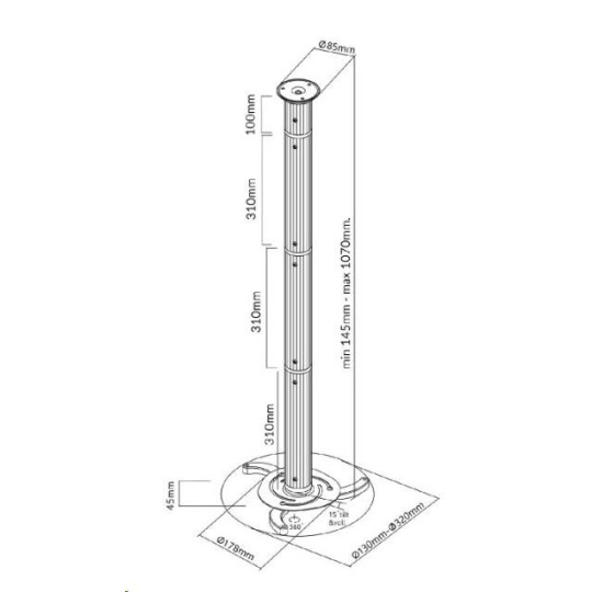Kompletní specifikace Stropní držák projektoru Fiber Mounts M5C17 Délkově nastavitelný, otočný, sklopný držák projektoru na strop, stříbrný, nosnost 10kg, univerzální na všechny běžně dostupné projektory Stropní držák projektoru s nastavitelnými vzdálenostmi od stropu Fiber Mounts M5C17 Univerzální, kvalitní polohovací držák pro stropní zavěšení projektorů a dataprojektorů. Držák je vhodný na 99% všech dostupných projektorů. Součástí balení jsou délkové nástavby, díky kterým je projektor možné zavěsit od stropu v délce od 13 až do 106cm, naklopit o 15° a otáčet ho do stran. Držák je vyroben z hliníku. Barevné provedení stříbrné. Držák pro stropní uchycení projektoru Fiber Mounts M5C17 Technické údaje: nosnost 10kg univerzální, vhodný na 99% běžně dostupných projektorů náklon +/- 15° natočení do stan +/- 360° nastavitelná délka od stropu 13, 39, 70 nebo 106cm barva stříbrná hliníková konstrukce záruka 2 roky.