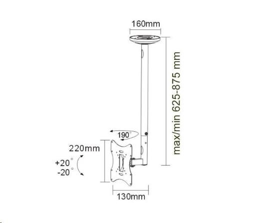 Technické údaje: maximální zatížení 30kg na LCD plazma LED televizory a monitory doporučená úhlopříčka obrazovky 22" až 42" VESA standard 75x75 až 200x200 otočný do stran +90° / -90° náklon obrazovky +20° / -20° nastavitelná délka držáku od 625mm do 875mm systém skrytého vedení kabeláže kvalitní, bezpečná a pevná konstrukce barva černá záruka 2 roky VESA 75x75 VESA 100x100 VESA 200x100 VESA 200x200.