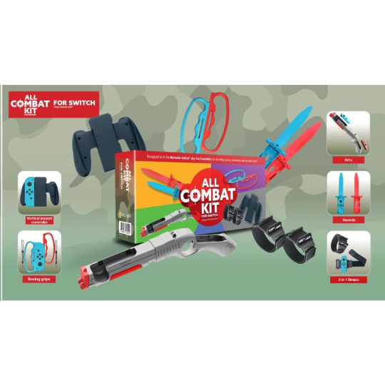 All Combat Kit je druhý z naší nové řady doplňků pro Switch a přináší stejnou zábavu jako All Sports Kit. Díky naší bojové sadě si naplno užijete celou řadu herních žánrů, jako jsou střílečky z pohledu první osoby, bojovky, fitness, sportovní hry a závody.
