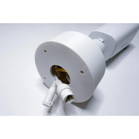 Plastový držák je určený pro uchycení kamery Synology BC800Z na stěnu nebo strop a to pomocí tří šroubů. Držák je vyroben z PETG materiálu na 3D tiskárně, má bílou barvu.