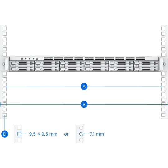 - Podpora montážních otvorů skříně: čtvercový otvor: alespoň 9.5 mm x 9.5 mm kruhový otvor: alespoň 7.1 mm