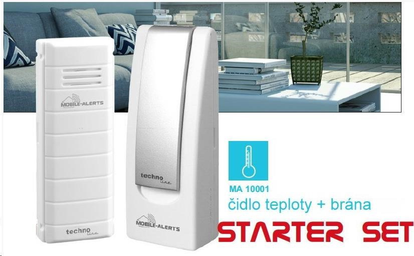 Startovací sada MA10001 obsahuje bránu (model MA10000) a bezdrátové čidlo pro měření teploty (model MA10100).