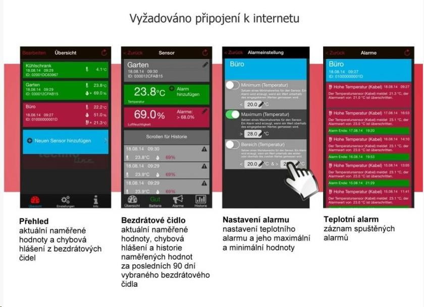 Kdekoliv na světě ja potom možné po připojení k Internetu na Vašem mobilním zařízení sledovat naměřená data.