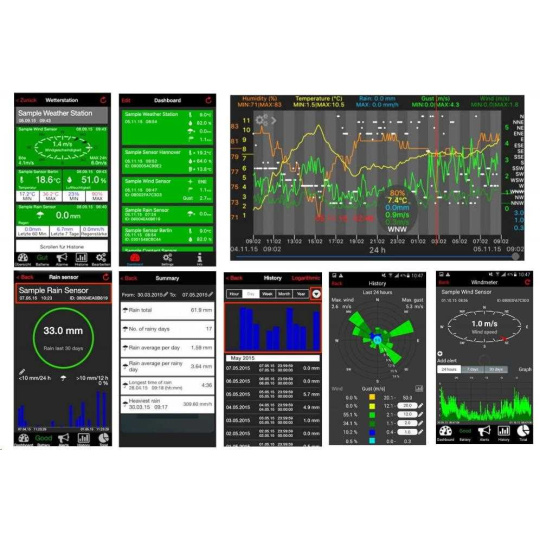 Meteorologická sada umožňuje pomocí bezdrátových čidel měření teploty, relativní vlhkosti, srážek a rychlosti a směru větru a přenos naměřených dat přes bránu a přes Váš router na Internet. Na Vašem mobilním zařízení s operačním systémem iOS 7 a novějším, nebo Android 3.2 a novějším pak můžete pomocí aplikace MOBILE-ALERTS naměřená data sledovat. Dále lze přidat další bezdrátová čidla, kdy maximální počet čidel, které je možné přihlásit k bráně, je 50.