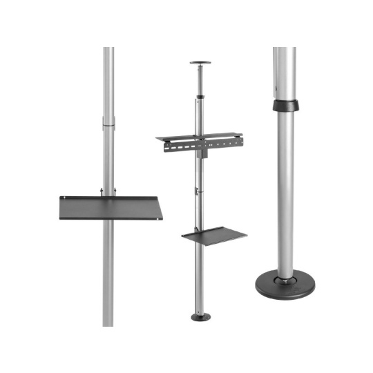 Držák Tv a polička na teleskopické tyči Fiber Mounts M79C1N Speciální držák Tv 43-70" na teleskopické tyči s nastavitelnou délkou 210-270cm, nosnost 30kg Máte omezený prostor nebo nemůžete instalovat držák do stěny? Chcete uchytit televizi kamkoliv do prostoru a nastavit její výšku? To vše Vám umožní speciální teleskopická tyč M79C1N s nastavitelnou délkou 210cm až 270cm, držákem na televize 43-70" a poličkou na příslušenství. Držák i polička jsou výškově nastavitelné. Nosnost 30kg, barevné provedení stříbrné. Teleskopická tyč s nastavením délky 210-270cm s držákem Tv a poličkou, instalace podlaha-strop Fiber Mounts M79C1N Technické údaje: nosnost 30kg na LCD LED QLED televize 37-70" podpora VESA 200x200 až 600x400 instalace podlaha - strop 210-270cm nastavení výšky držáku Tv 870-1625mm nastavení výšky police 50-850mm / nosnost police 5kg systém pro skryté vedení kabeláže pevná, spolehlivá konstrukce instalační materiál barevné provedení stříbrné záruka 3 roky Teleskopický držák Tv podlaha - strop s poličkou Fiber Mounts M79C1N Držák na Tv podporuje VESA standardy: VESA 200x200 VESA 300x200 a 200x300 VESA 300x300 VESA 400x200 a 200x400 VESA 400x300 a 300x400 VESA 400x400 VESA 600x200 VESA 600x400.