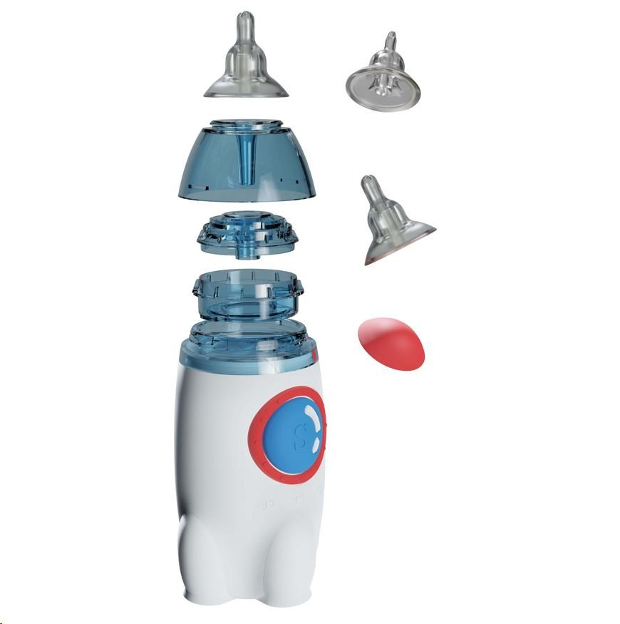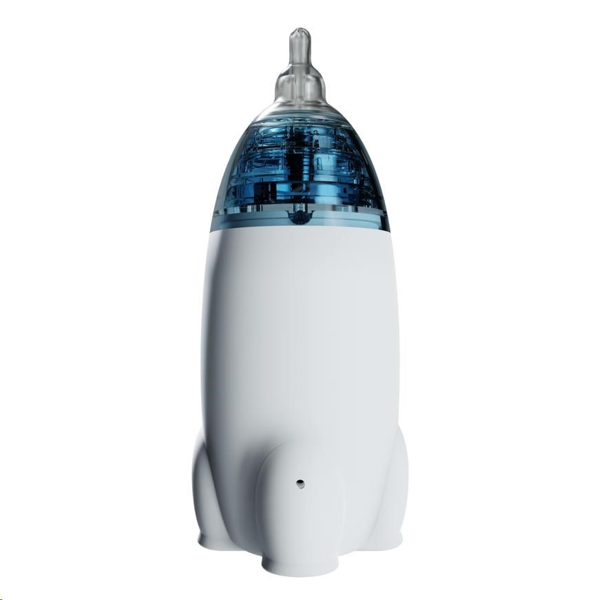 Byť je odsátí s TESLA Nasal Aspirator NA300 jemné a bezpečné, bude zřejmě i tak nutné dítě rozptýlit. Pozornost upoutá barevné světlo procházející přes modrého prstenec přístroje nebo deset melodií. Zaujme však i svým designem. Vypadá jako vesmírná raketa, a tak ji ani nemusíte po každém použití schovávat zpět do lékárničky. Zůstane-li na poličce vedle postýlky, stane se atraktivním doplňkem dětského pokojíčku.