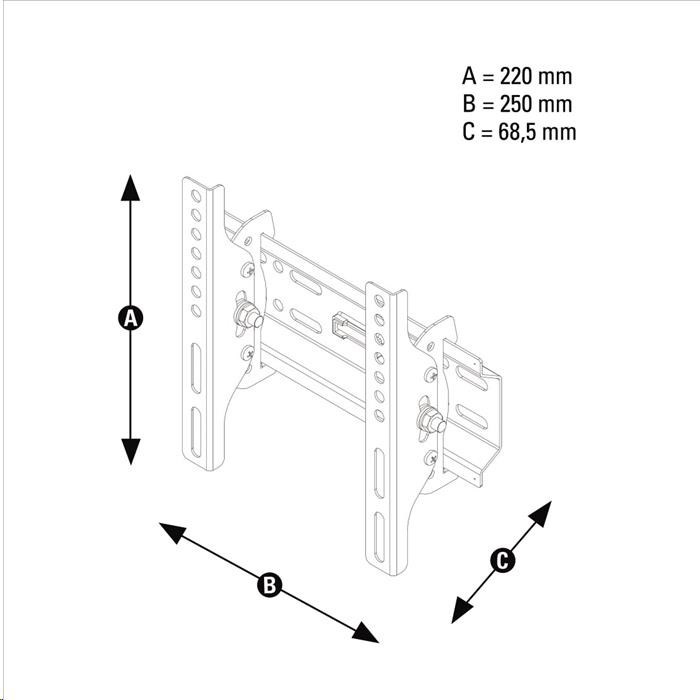 - naklápěcí držák pro LCD obrazovky s úhlopříčkou cca 10" až 46" (25 až 117 cm) - VESA max. 200x200, nastavitelná ramena pro jakoukoliv menší rozteč závitů - snadné zavěšení TV pomocí dvou ramen - nastavitelný sklon +15/-15 stupňů - max. velikost upevňovacích závitů na TV: M8 - rozměry nástěnného modulu: 25 x 10 cm - hloubka: 6,9 cm - nosnost: max. 30 kg - kategorie: 1* (základní řada) - barva: černá - včetně vodováhy a montážního příslušenství.