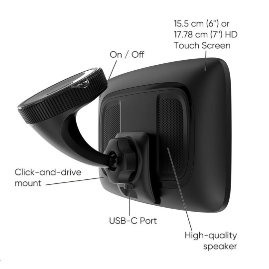Prohlédněte si svou trasu ve velmi vysokých detailech na 6" / 7" dotykovém displeji, který se může pochlubit nejlepším rozlišením na trhu. A díky ovládání pomocí hlasových příkazů můžete zařízení TomTom GO Superior ovládat, aniž byste museli dát ruce z volantu. Snadno použitelný držák Click-and-Drive navíc drží navigační zařízení bezpečně na místě.