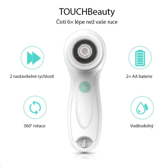 Elektrický čistící kartáček TOUCHBeauty 0759 nabízí tři různé nástavce, které odstraňují make-up, hloubkově čistí pleť a pomáhají s peelingem. Dvě pracovní rychlosti a velká ergonomická rukojeť zajišťují maximální komfort při každodenním používání. Díky voděodolnému provedení je čištění přístroje hračkou. Praktické pouzdro se hodí nejen pro ukládání přístroje a nástavců, ale i pro cestování.