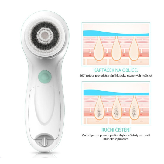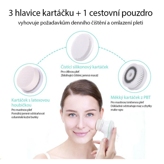- Silikonový kartáček pro citlivou pokožku, masíruje pleť a zlepšuje krevní oběh