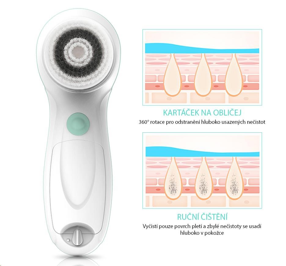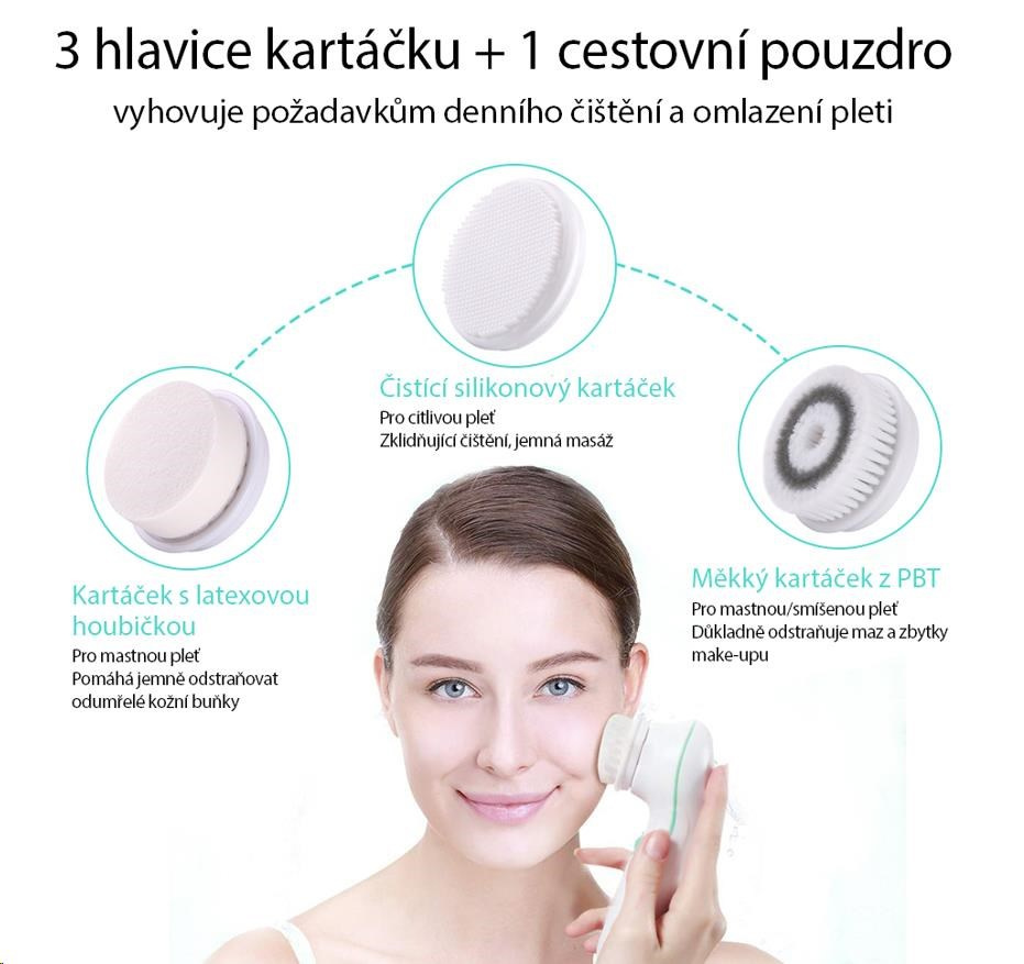 - Silikonový kartáček pro citlivou pokožku, masíruje pleť a zlepšuje krevní oběh