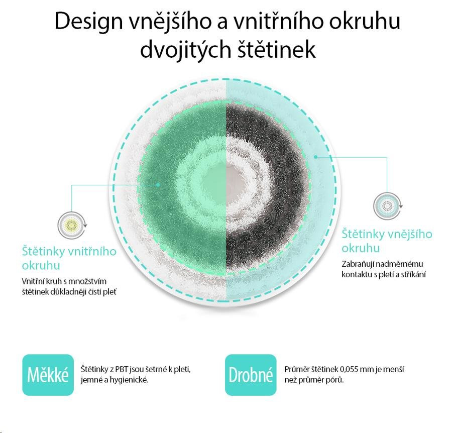 - 0,055 mm PBT kartáček pro odstraňování mazu, nečistot a make-upu