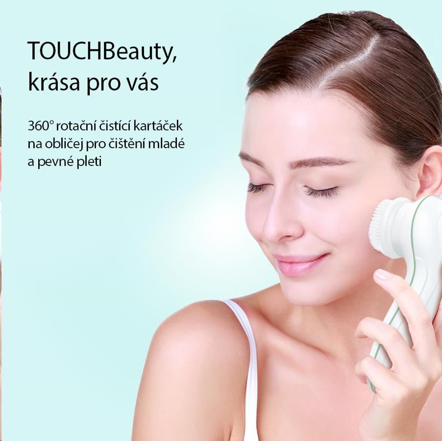 Elektrický čistící kartáček TOUCHBeauty 0759 nabízí tři různé nástavce, které odstraňují make-up, hloubkově čistí pleť a pomáhají s peelingem. Dvě pracovní rychlosti a velká ergonomická rukojeť zajišťují maximální komfort při každodenním používání. Díky voděodolnému provedení je čištění přístroje hračkou. Praktické pouzdro se hodí nejen pro ukládání přístroje a nástavců, ale i pro cestování.