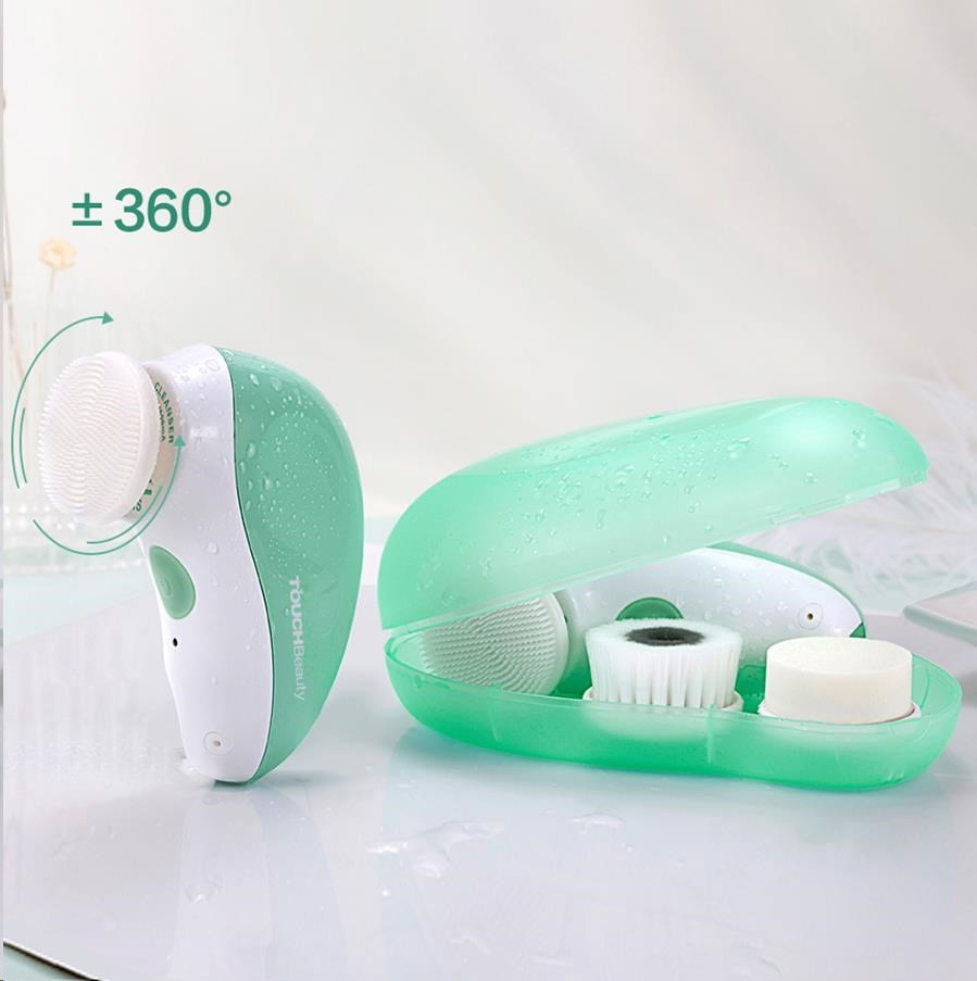 TOUCHBeauty 1387 cestovní čistící kartáček na pleť 3 v 1 zelený
