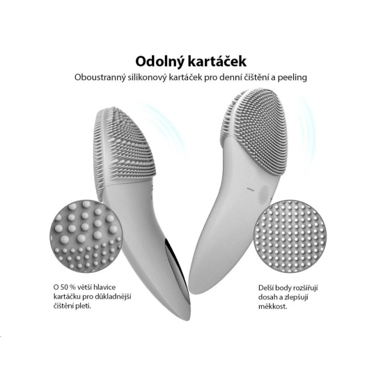 - Oboustrannou čisticí hlavu lze použít pro každodenní čištění a exfoliaci.