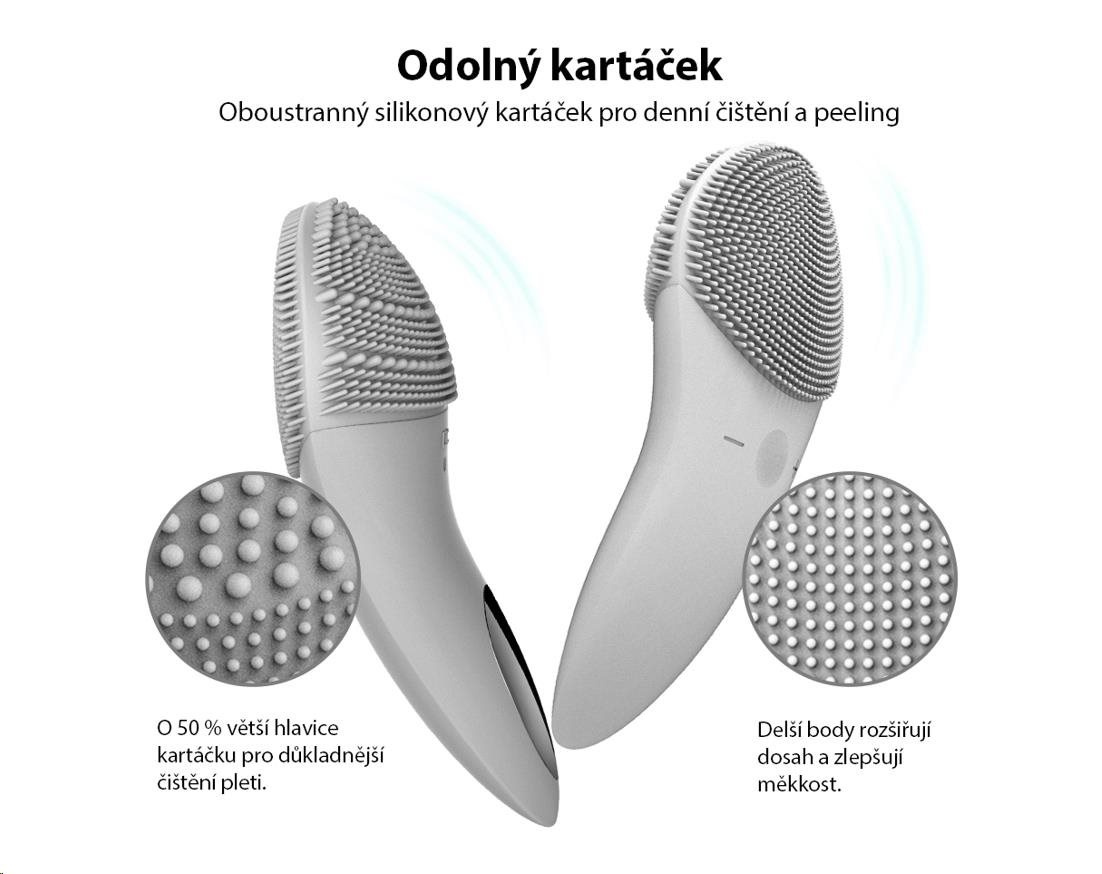 - Oboustrannou čisticí hlavu lze použít pro každodenní čištění a exfoliaci.