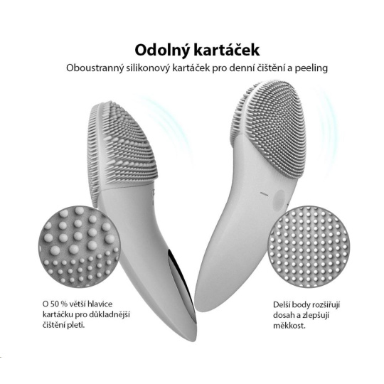 - Oboustrannou čisticí hlavu lze použít pro každodenní čištění a exfoliaci.