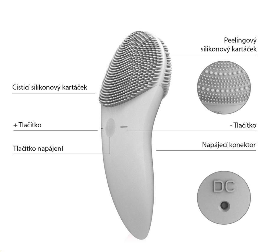 - Měkký povrch silikonového kartáče, šetrný k pokožce.
